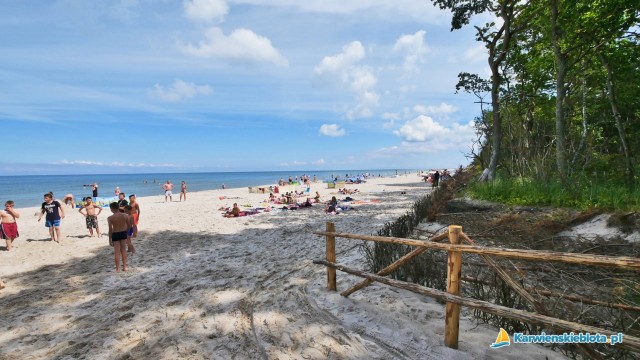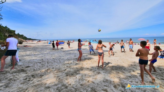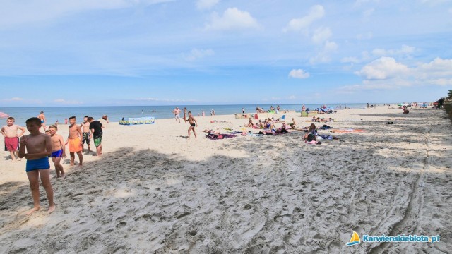 Jeżeli mówimy o plaży w Karwieńskich Błotach, to plaża ta znajduje się przy miejscowości Karwieńskie Błoto Drugie i odległość do niej to około 800-1000 metrów. Do morza idzie się przez nadmorski las. Sama plaża jest rozległa i szeroka (szersza niż w plaża Karwi) a co chyba najważniejsze - niezatłoczona. Można na nią również podjechać samochodem, czy rowerem. Z miejscowości Karwieńskie Błoto Pierwsze na plaże jest dalej (2-2,5 km), ale mamy do wyboru dwie plaże tę naprzeciwko Karwieńskiego Błota Drugiego i plażę w Karwi.
